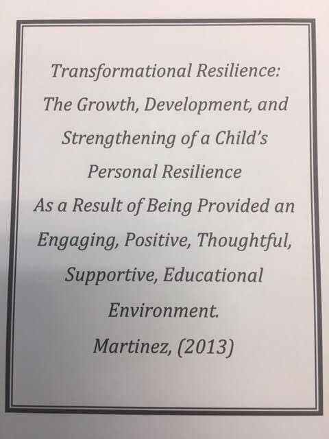 My focus is on #Resilience development, and my concept is simple to comprehend. I believe that each person has the capability to support others with developing #resilience skills. I also firmly believe that it is an obligation for adults, especially educators, to build environments for children, and especially their students, that foster the development of the latent ability to be #resilient that resides in each child.